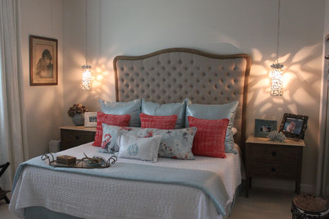 A full scale renovation incorporating new pieces along with original homeowner items. Inspired by the celadon of Fort Walton's water and Florida's apricot sky.